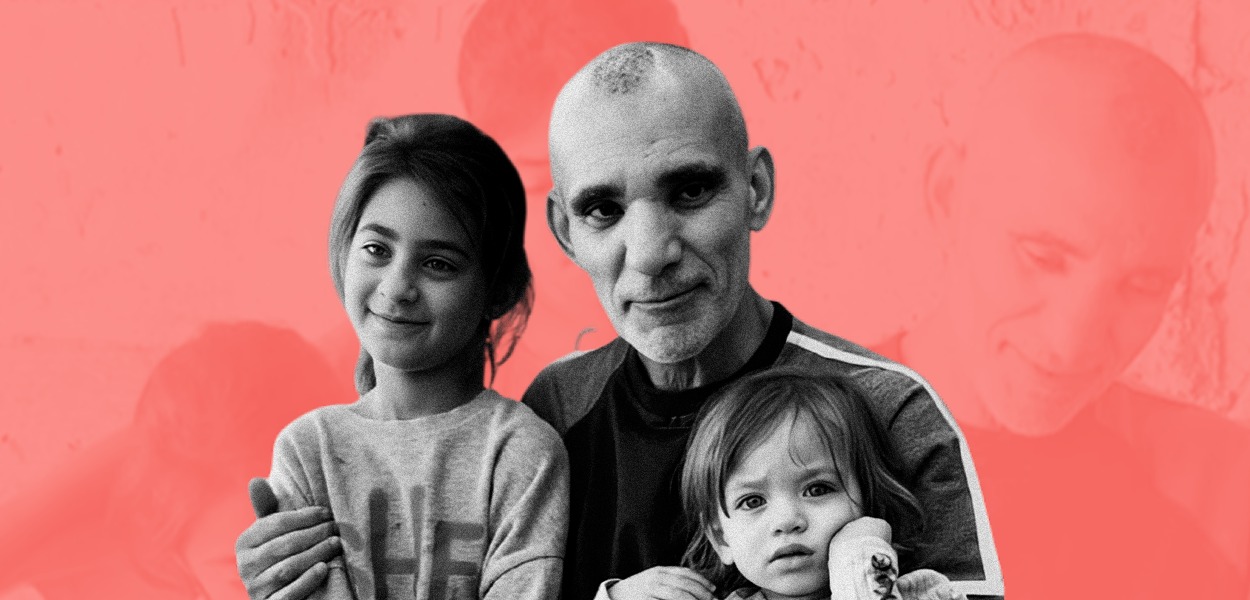 الأسير عمر بسيس يحتضن أحفاده عقب الإفراج عنه بعد 23 عامًا من الاعتقال