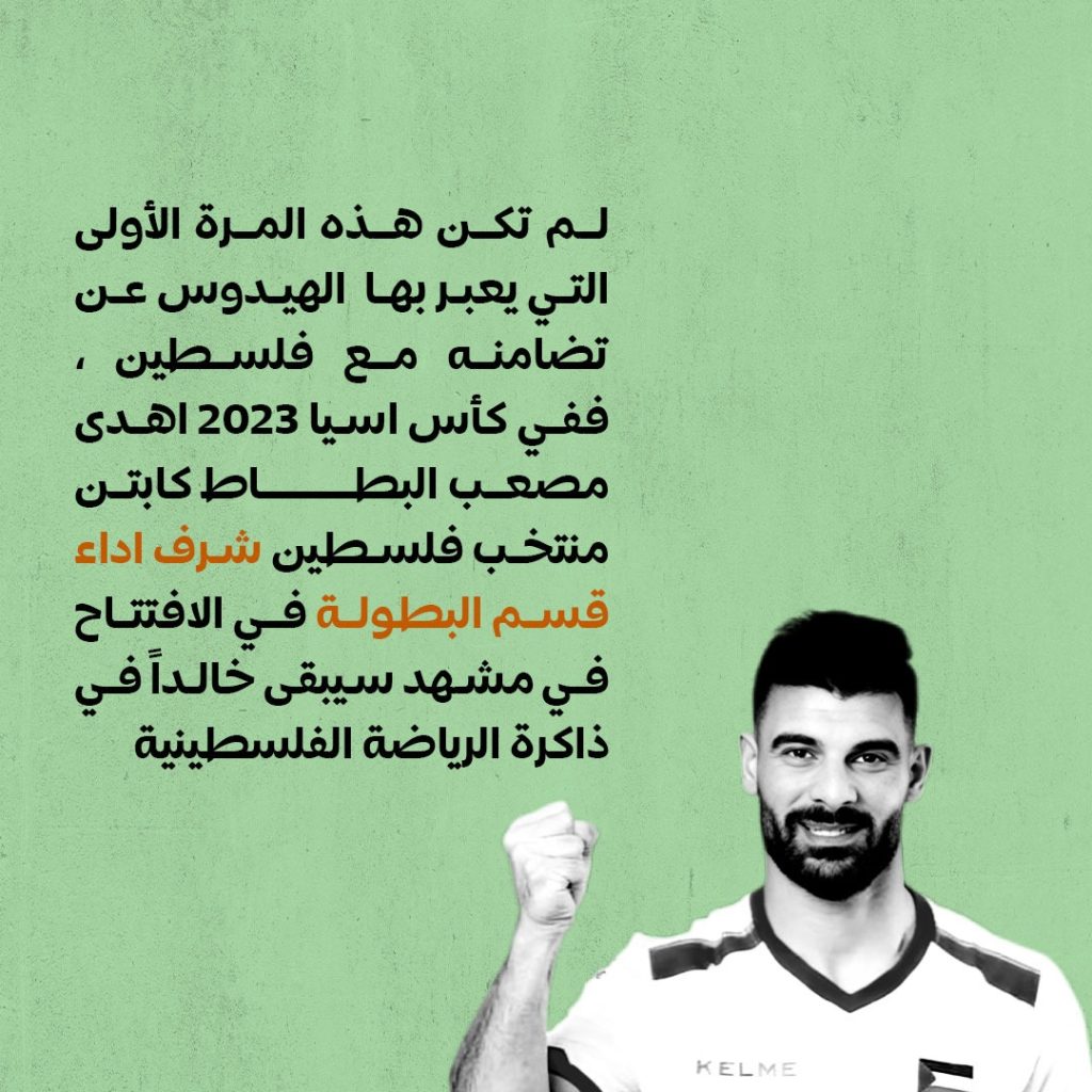 لم تكن هذه المرة الأولى التي يعبر بها الهيدوس عن تضامنه مع فلسطين ، ففي كأس اسيا 2023 اهدى مصعب البطاط كابتن منتخب فلسطين شرف اداء قسم البطولة في الافتتاح في مشهد سيبقى خالداً في ذاكرة الرياضة الفلسطينية